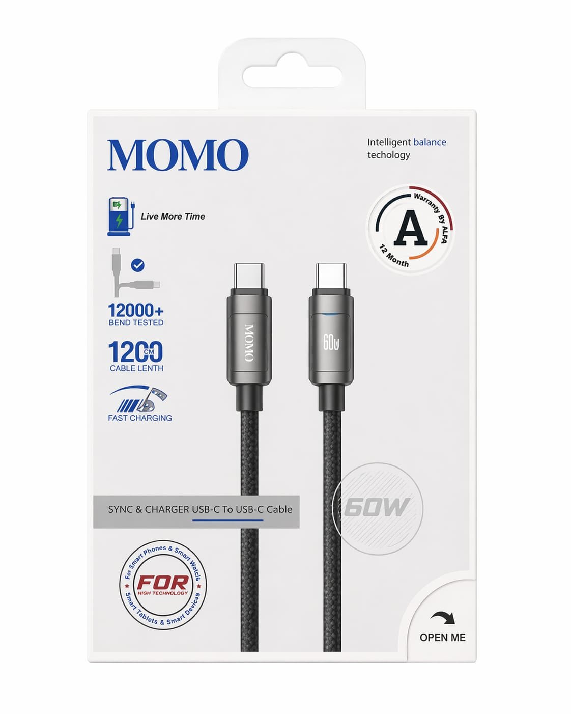 كابل MOMO USB-C إلى USB-C بقوة 60W - 011033