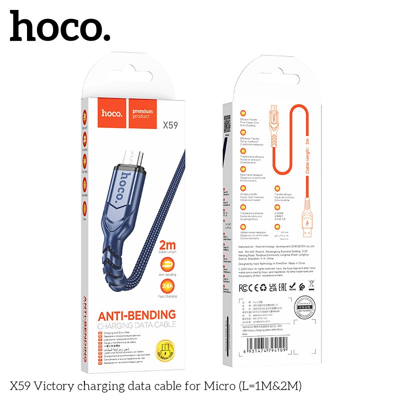كابل شحن كابل Hoco X59 USB-A إلى Micro USB 60W بطول 2 متر | كابل موبايل بقوة 60W | أفضل سعر في مصر | باسورد موبايل ستور