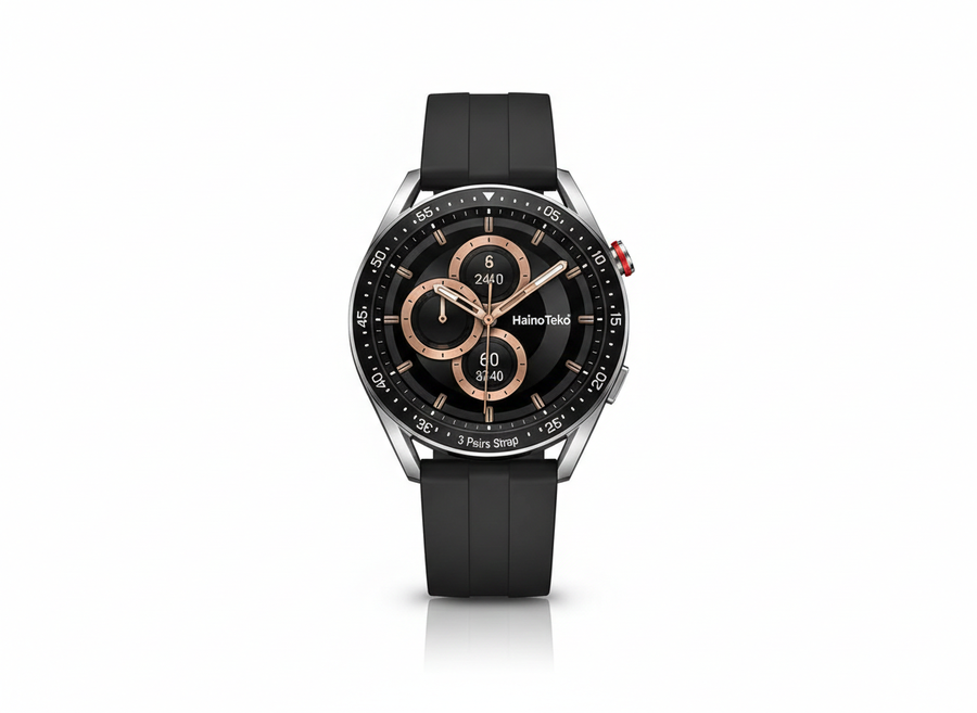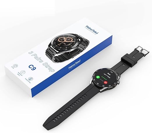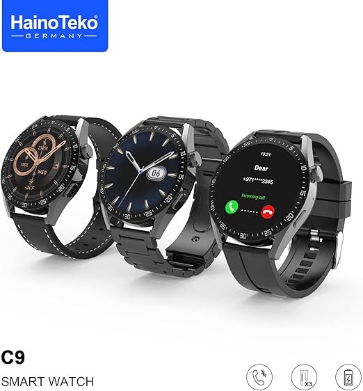 ساعة Haino Teko Crown C9 الذكية بـ 3 أحزمة في باسورد موبايل ستور. تدعم المكالمات، تتبع الصحة، وتصميم كلاسيكي فاخر باللون الأسود، اطلبها الآن!