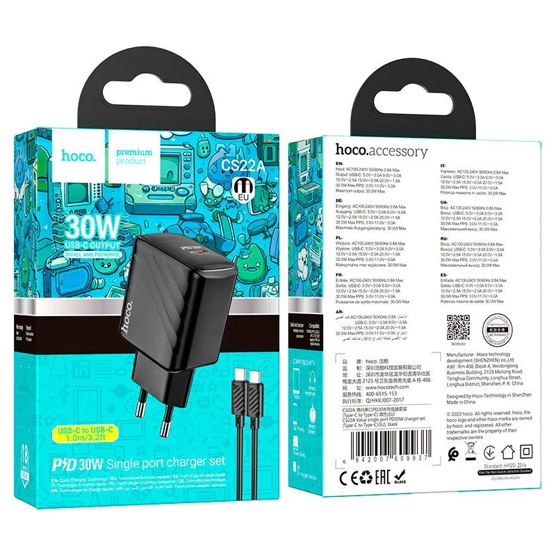 وفرنا لك الحل المتكامل للشحن السريع في باسورد موبايل ستور مع مجموعة Hoco CS22A. يأتي هذا الشاحن بقوة 30 وات ليدعم تقنية PD، مما يجعله قادراً على شحن أجهزتك (آيفون، سامسونج، أو أجهزة لوحية) بسرعة فائقة وأمان تام.