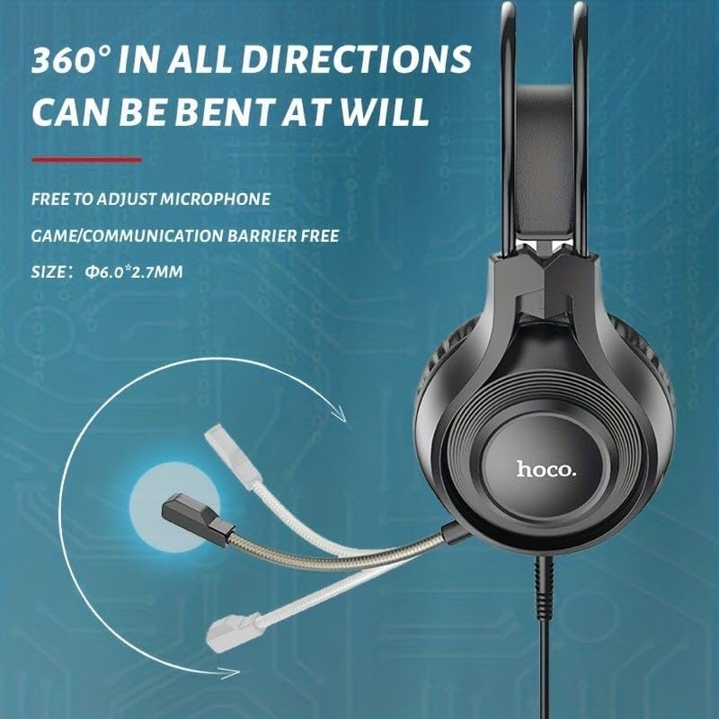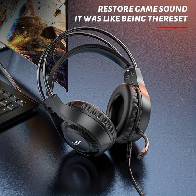 تأتي Hoco W106 بتصميم هندسي مريح مع طوق رأس قابل للتعديل ووسائد أذن كبيرة الحجم توفر عزلاً ممتازاً للضوضاء، مما يضمن لك التركيز الكامل والراحة التامة خلال جلسات اللعب الطويلة.