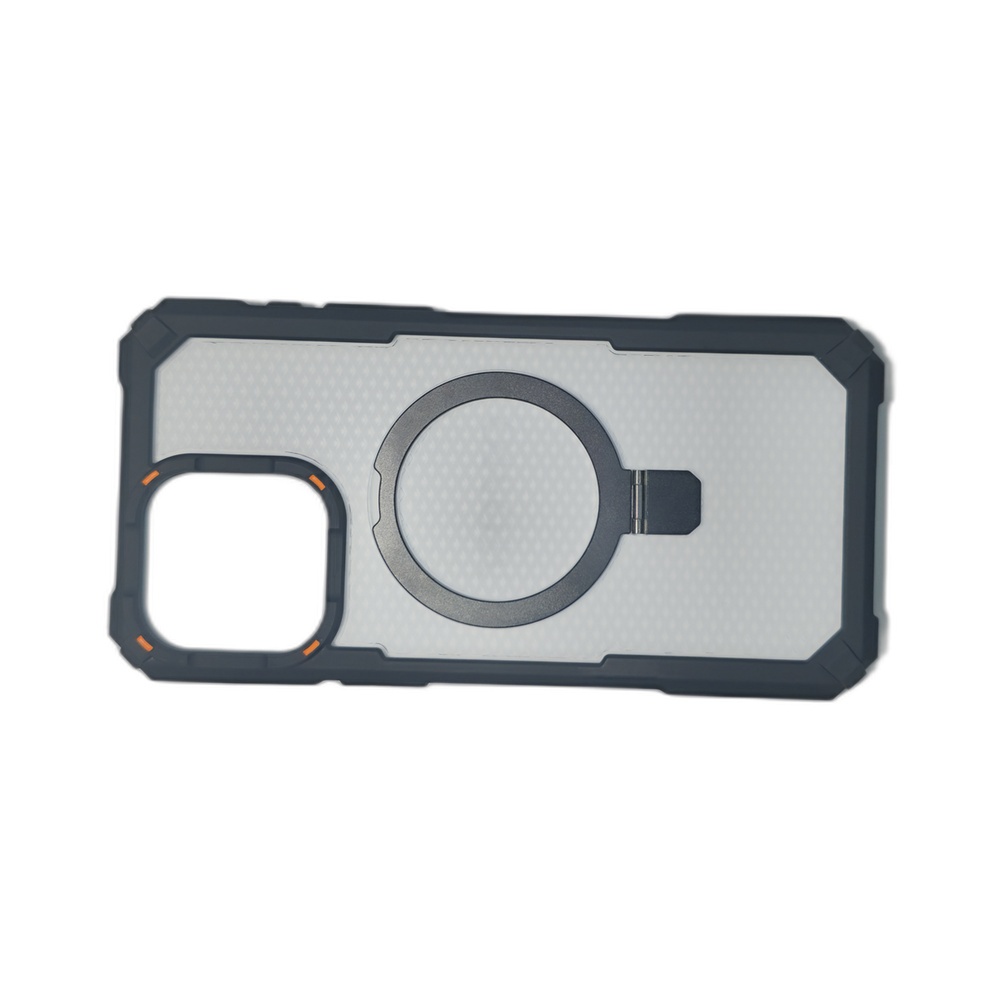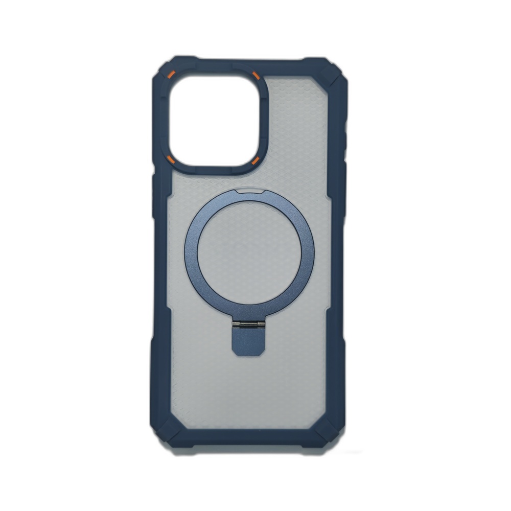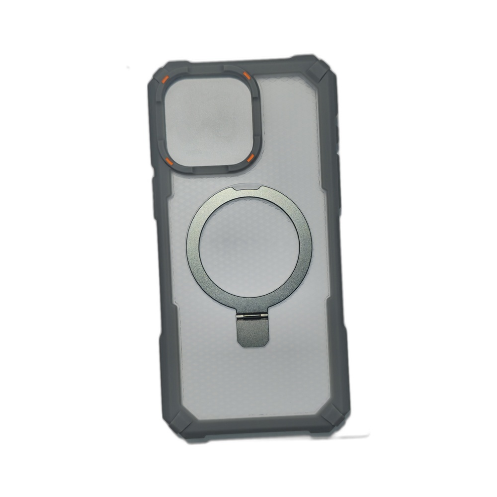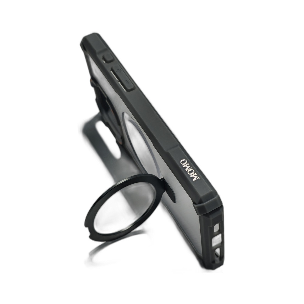 احمِ هاتف iPhone 15 Pro Max بجراب MOMO019 من باسورد موبايل استور. جراب شفاف بمسند معدني مدمج، يدعم MagSafe ويوفر حماية عسكرية للزوايا. اطلبه الآن